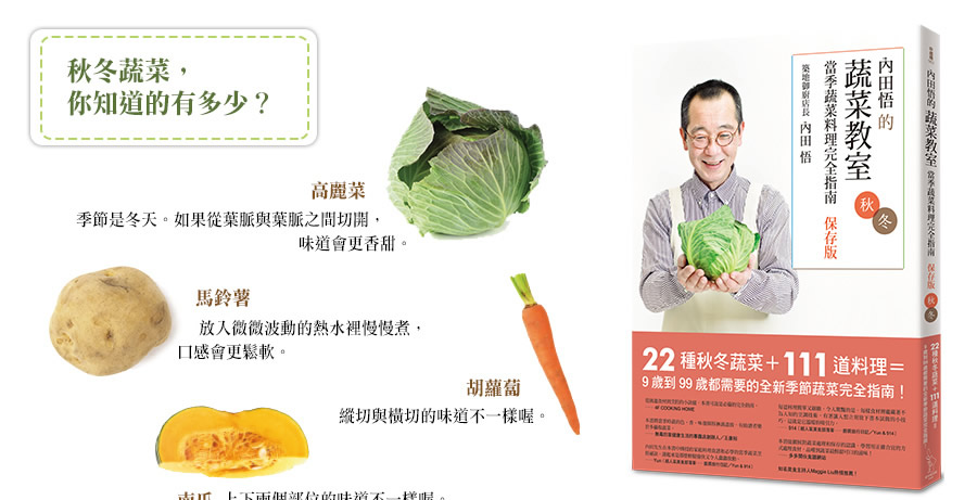 即日起~9月30日前於博客來購買《內田悟的蔬菜教室:當季蔬菜料理完全指南 保存版 秋冬》,即可參加由「4F Cooking Home」贊助的抽獎活動,中獎者將可獲得「4F Cooking Home 11月份料理課程」1堂,本活動共抽出2個名額。